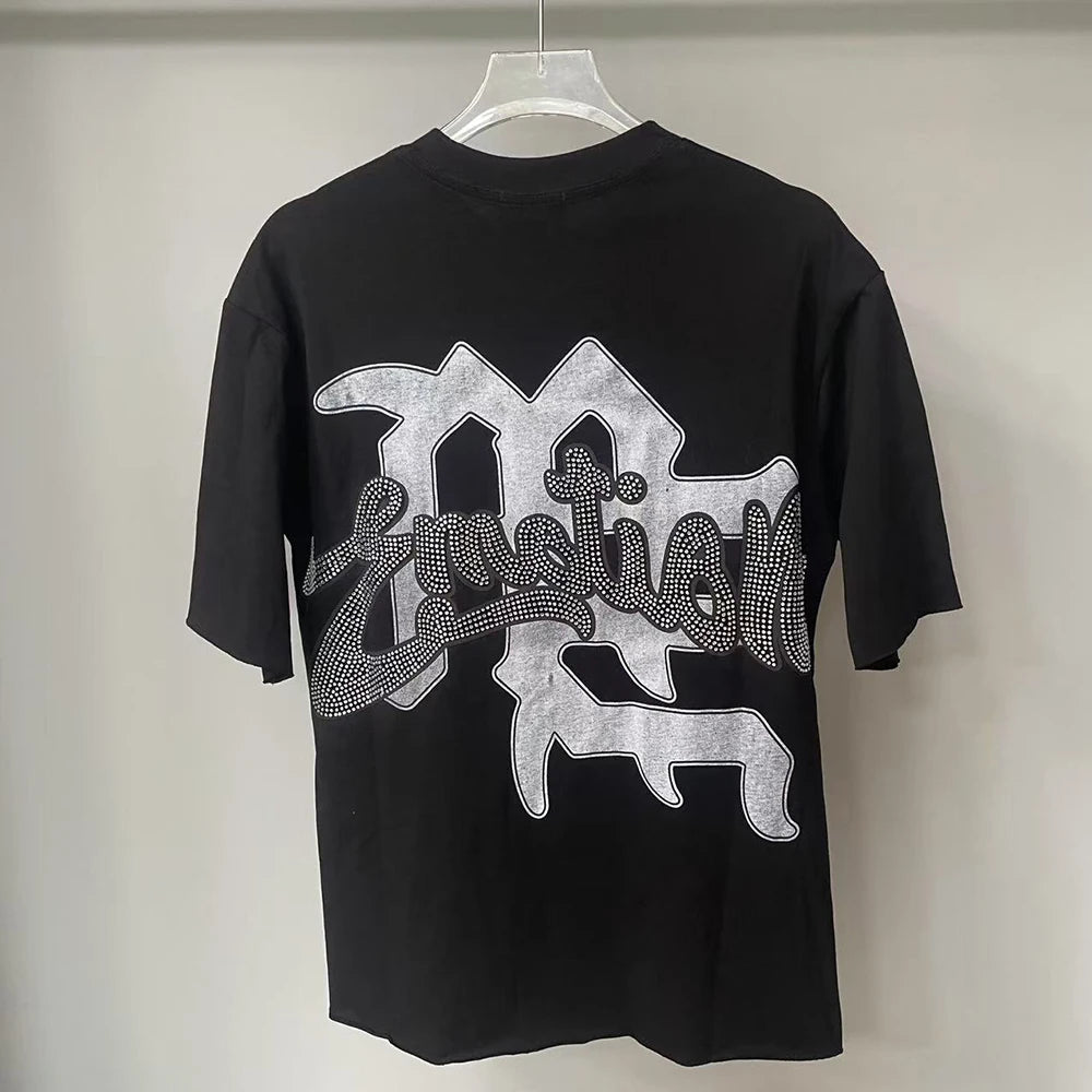 Update your wardrobe with this black short-sleeved t-shirt with glitter details, designed for those who live the streets with attitude, style, and authenticity. Its loose, oversized fit, soft, breathable cotton fabric, and eye-catching print make it an urban summer essential.