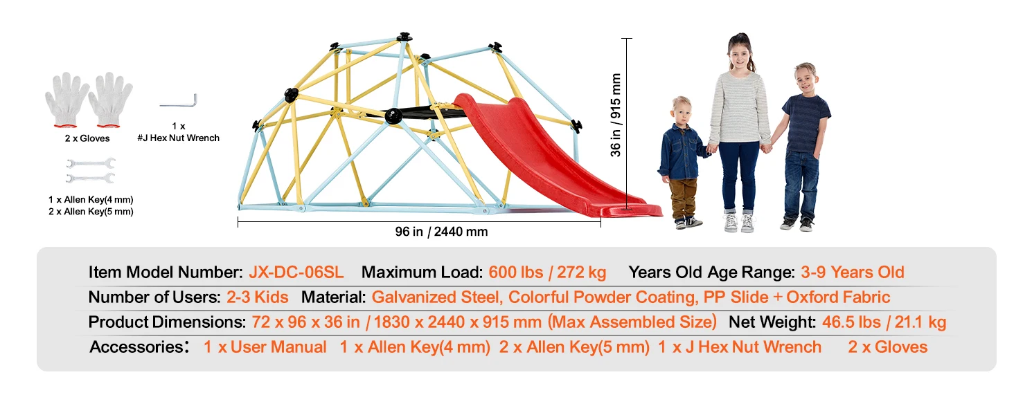We value your time. That’s why the climbing dome comes with all tools, a detailed manual, and an instructional video to make installation simple. Spend less time setting up and more time enjoying active play with your kids.