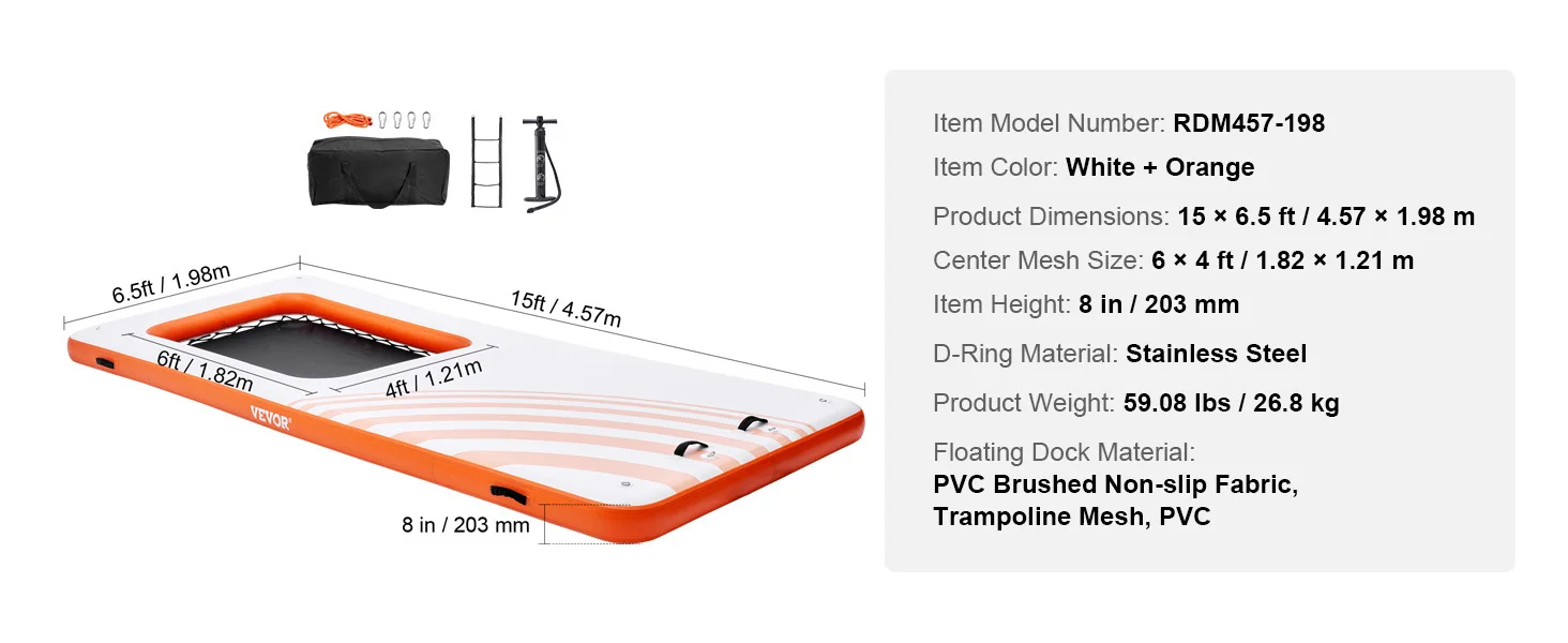 Made of high-density PVC (2700 g/m²), this floating platform provides a non-slip, strong, and durable surface, ideal for activities with family or friends.
