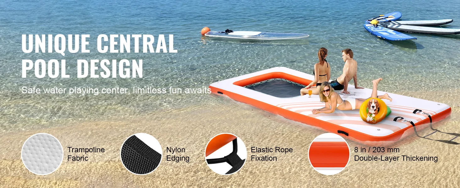 ✔ Floating platform for sunbathing or diving.