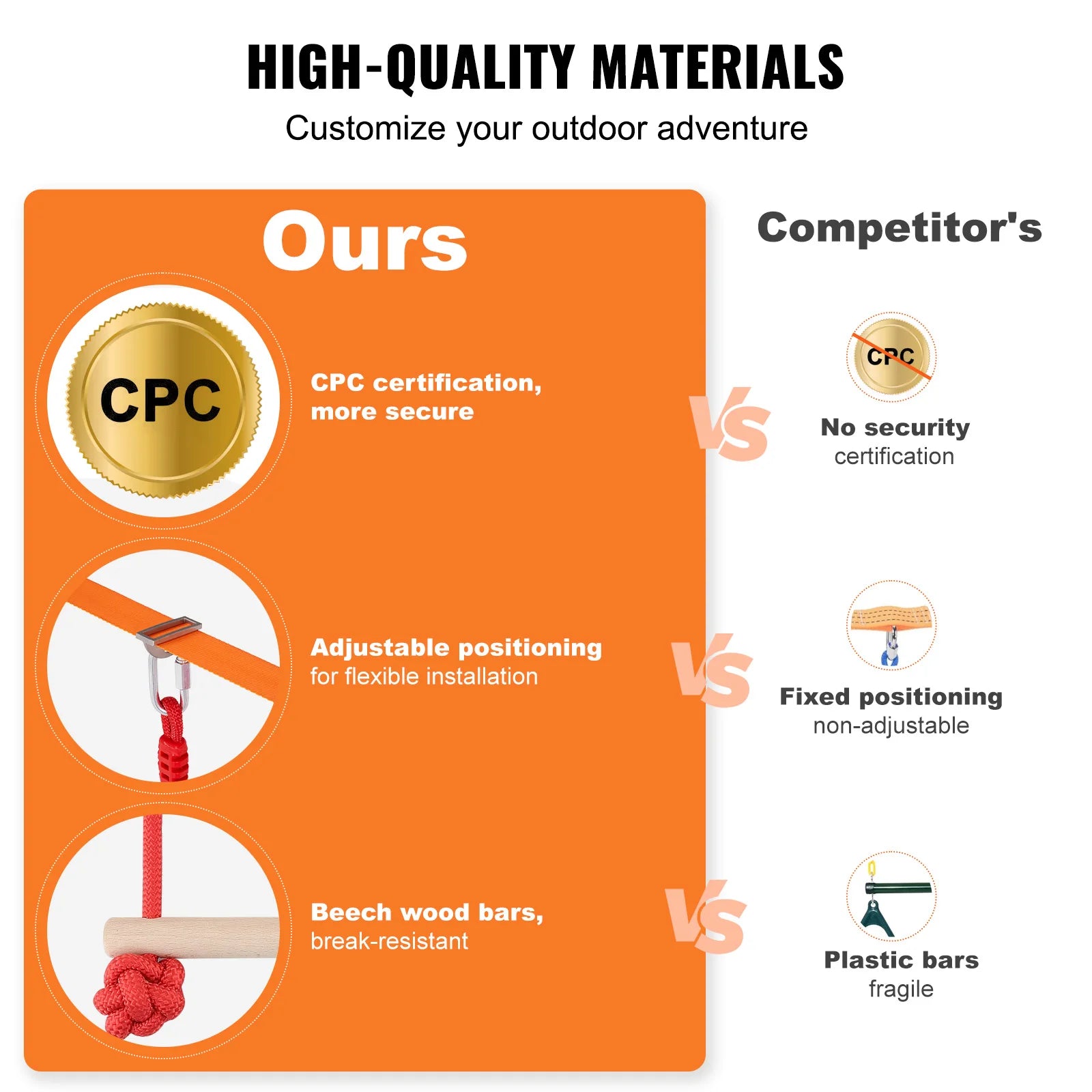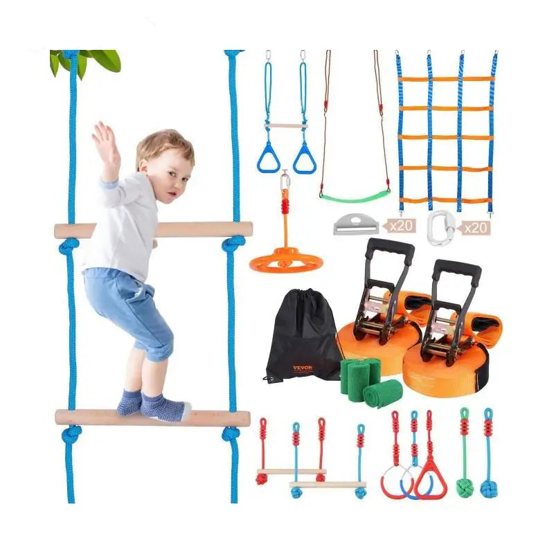 - Quick Installation and Disassembly: The outdoor playset equipment can be assembled in just 5 minutes. There's no need for a wide flat area in your yard; just fix it between two trees or poles 20 to 40 feet apart to start customizing your obstacle challenge game! It's an ideal alternative to traditional playgrounds, offering a convenient and flexible backyard challenge game for children of various ages and skill levels.